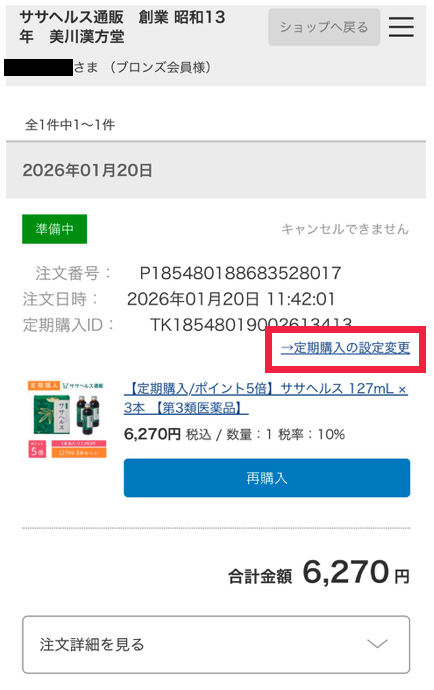 「定期購入の設定変更」を選択してください。