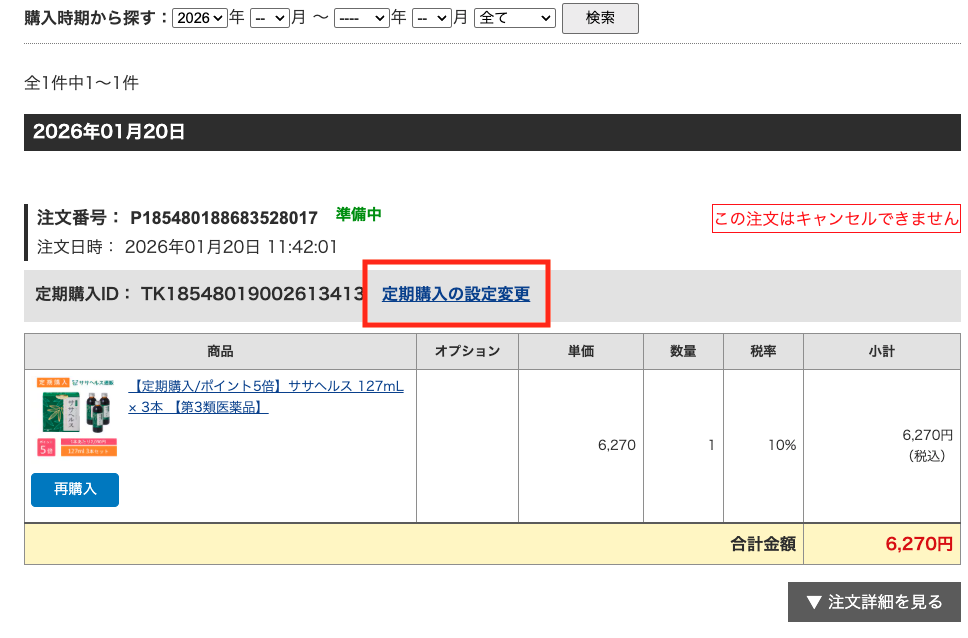 ササヘルス通販をご利用いただきありがとうございます。