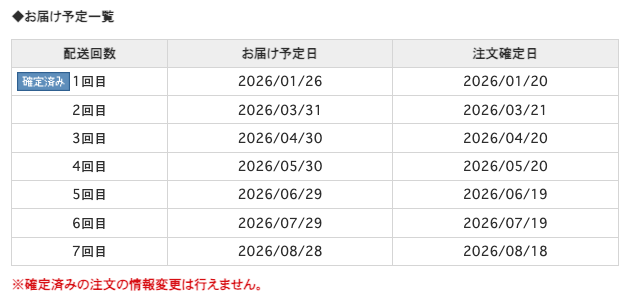 「お届け予定一覧」にて、最新のスケジュールをご確認いただけます。
