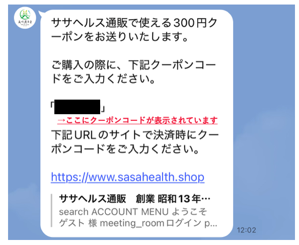この度は、ササヘルス通販のLINE公式アカウントを友だち登録いただき、誠にありがとうございます。