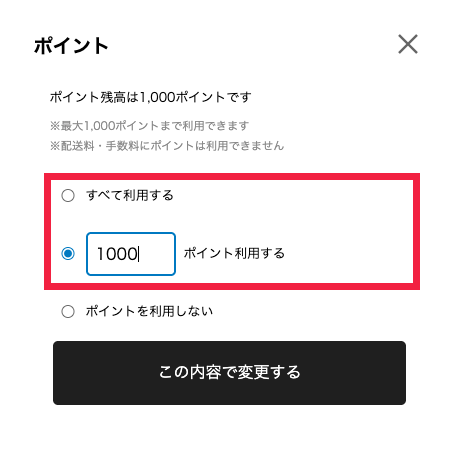 2.「ポイントを使用する」にチェックを入れて使いたいポイントを入力する。