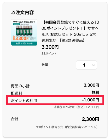 3.注文確認画面でポイント分が値引きされていることをご確認ください。