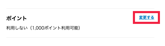 1.注文確認画面のポイントを「変更する」をクリックする。